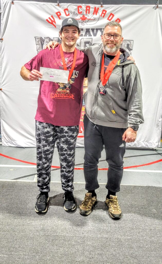 Powerlifters Joey Kilpatrick and his coach, Barry McEvoy continued their winning streaks and record breaking lifts at the World Powerlifting Congress’ Heavy Weights Gym “Barbell Carnage” powerlifting competition held on Feb. 21 in Brockville. The competition saw 18 participants from all ages, genders, and weight categories supporting and encouraging each other to move some serious weight. Kilpatrick was competing in the World Powerlifting Congress 19 to 23 age category in the 90 kilogram untested class, while McEvoy was competing in two classes, the Amateur World Powerlifting Congress tested 90 kilogram master 60 to 64 age category and the open 90 kilogram category.