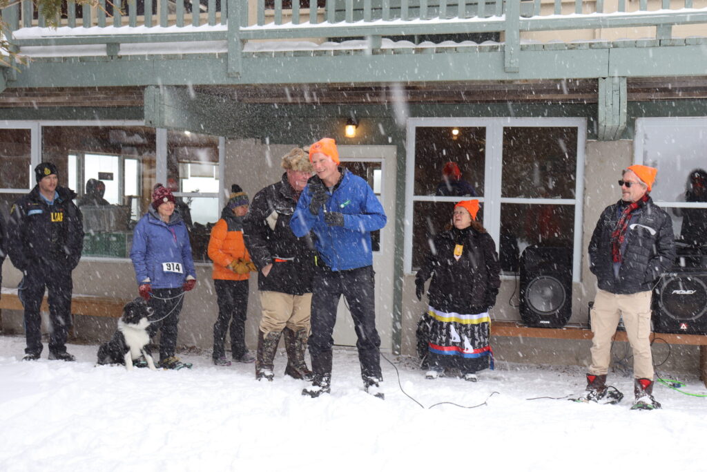 “The ‘mushers’ had a great time talking to approximately 65 visitors who travelled great distances from Kingston and Cobourg to participate. As for the snowshoeing, two courses had been set up. One four kilometre and another one kilometre. A husband-and-wife team won the four kilometre with the prize being passes to the Fenlon Falls Family Fun Day on Feb. 1, and second prize was awarded to another husband and wife team who won two $25 gift cards. Only the two positions were considered. The one kilometre first, second and third prizes of snowshoe medals went to members of the North Hastings Community Integration Association. Other draw ticket prizes consisted of Snowshoe Hustle toques, trail watch caps, a commemorative medal of our event and a Kijicho Manito Madaouskarini Algonquin Nation 2026 calendar,” he says