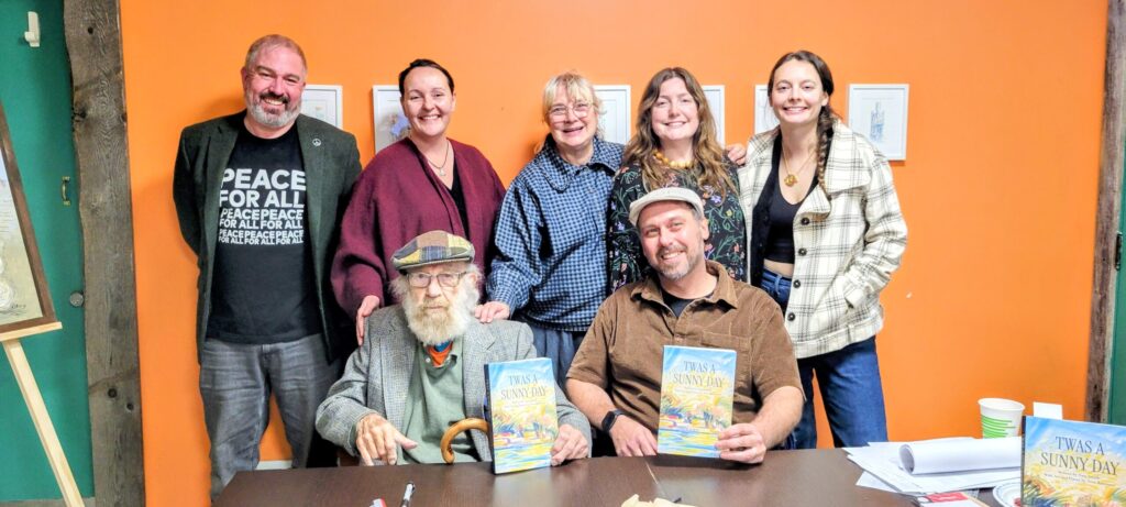 'Twas A Sunny Day to resist fascism with artist Arne Roosman![]() By Bill Kilpatrick It was a day of firsts on Nov. 15 as the Canadian Peace Museum hosted their first official event celebrating the release of 'Twas A Sunny Day a memoir of 93-year-old Wollaston resident artist Arne Roosman written by local award-winning journalist Nate Smelle. It was standing room only as people packed into the Canadian Peace Museum to hear excerpts from the book, view some of Roosman's art, enjoy some snacks, mingle, and ask the author questions. The book is a moving tale of Roosman's trials, tribulations, and experiences as he and his family left his home country of Estonia during the Second World War and immigrated to Germany, Sweden, and eventually Canada. But as Smelle pointed out it is also a book where past and present collide. The book creates a narrative that connects the past to the present giving context to current events from someone who has experienced humanity at its worst and is seeing the patterns being repeated in the present. The executive director of the Canadian Peace Museum Chris Houston was excited to be hosting such an event for local artists and journalists. “I'm delighted that people are coming here and asking questions,” he said. “We are running a museum to promote peace in all the different ways that it manifests itself — the absence of violence, war, and fear, the presence of democracy and a healthy planet, and a fairer society. We are delighted to promote a book that is all about a fairer society. We have a local artist and local journalist and it's lovely.” The event was attended by friends and family of Roosman and Smelle along with fellow artists, local dignitaries, and two filmmakers from Estonia. The brother and sister duo, Reet Mae and Tom Mae, who are recording people's first-hand experiences from the Estonian diaspora during the Second World War, are particularly interested in Roosman's story because, not only is Roosman a fascinating person, but his family left Estonia in 1941, three years earlier than the main diaspora. “We have hundreds of hours of footage [from other people] but Arne is a particularly heart-felt person for us. He's an artist. He's so creative but he's also so philosophical and thoughtful. He has all of that, he has a lovely connection to nature. He has a super interesting family that we couldn't even put in here. He's got an uncle who wrestled bears,” she exclaimed. Reet explained that they have been meeting with Roosman since before 2017 and they are hoping to put together a 60-minute film of him telling stories narrated through his art. Reet made a plea to other artists and those who may own some of Roosman's art to contact her as she is looking for more of Roosman's work for the film. She said that she is also looking for artists who may be able to do some sketches in Roosman's style. While her film on Roosman's stories is not yet complete, she was more than happy to be attending the launch party for the book about Roosman's story. “I am super excited to be here at the revealing of the book because it also speaks to Arne, and eventually we will also get a film that will speak to Arne as well.” she stated. The event began with the book's editor Cameron Montgomery reading from the forward of the book, which she wrote. She stated, “Arne Roosman has lived a poignant and fascinating life so far, and he wears it in the sparkle of his ice blue eyes, the way he rolls his rrr's, his fashionable self-styling, sitting at the kitchen table, listening to CBC Radio and painting scenes from Ragnarok. This man is one of the greatest I have ever known, an inspiration for my own art and the most clever conversationalist. The man cannot suffer from boredom, for his interests are deep and varied. He is not bogged down by trivial malaise; he has survived unspeakable horrors, and takes pleasure in the joys of good food, good company, and good books. And of course, art.” Montgomery added that it was a pleasure to have the opportunity to write the forward for a book about her “dear friend.” Montgomery finished the forward by positing a question that is on many Canadians' minds these days, pointing out that “Arne fled decimated Europe for the wilds of rural Ontario, moving to the most remote little place he could find to make a home with his love Liina, and a lifetime later, he faces yet another homeland endangered as [Donald] Trump threatens to make Canada the 51st state of the U.S.A. Are we doomed to repeat the past? Or, can the good people of Earth forge a future that is for and by the people for real?” Smelle also spoke intimately concerning his relationship with Roosman that began while completing an article for the local paper back in 2019. The relationship continued to evolve as Roosman and Smelle shared stories both past and present, explored different ideas, and of course indulged in libations. “I noticed that the recordings that I did with Arne were always four to five hours long. For a story in a small town newspaper you're in and out in 30 to 45 minutes, an hour tops. That was the time that we spent on the actual article, the rest of the time was just us sipping beer, talking about his past, his incredible stories, the things he's lived through. And often the conversations would wander into today.” And this, according to Smelle, was what made Roosman's perspective so unique. “We're digging into the current moment by looking back at the past,” stated Smelle. Smelle has deeply cherished the time that he has spent with Roosman whom he described as a “peace loving, anti-fascist artist” who taught him about what it truly means to be a “foreigner.” The time Smelle spent listening to his stories and revising the book was a constant learning experience. “I feel like every time I read the book over I learned something else about Arne and something about myself.” And learn Smelle did, as Roosman, who refuses to use the